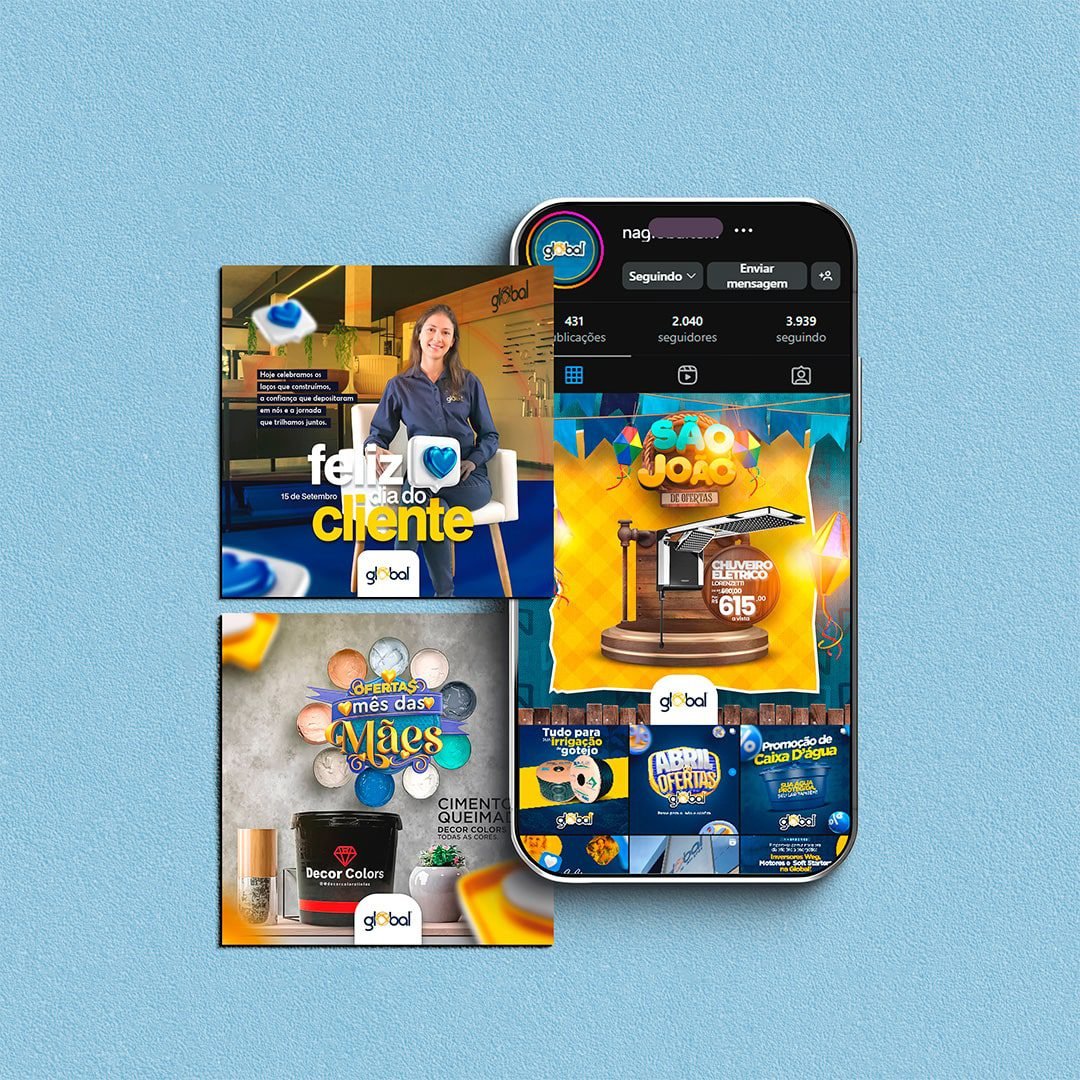 Em nossa atuação, criamos um calendário de conteúdos temáticos, alinhado à identidade visual e ao posicionamento da empresa. Além disso, produzimos artes personalizadas e buscamos formatos interativos, incentivando o diálogo entre a Global e seus seguidores. O resultado foi uma comunicação mais clara, atrativa e coerente, refletindo a essência inovadora que faz parte do DNA da marca.